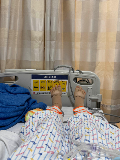남편은 키도 큰데 보호자 침대 너무 작아...