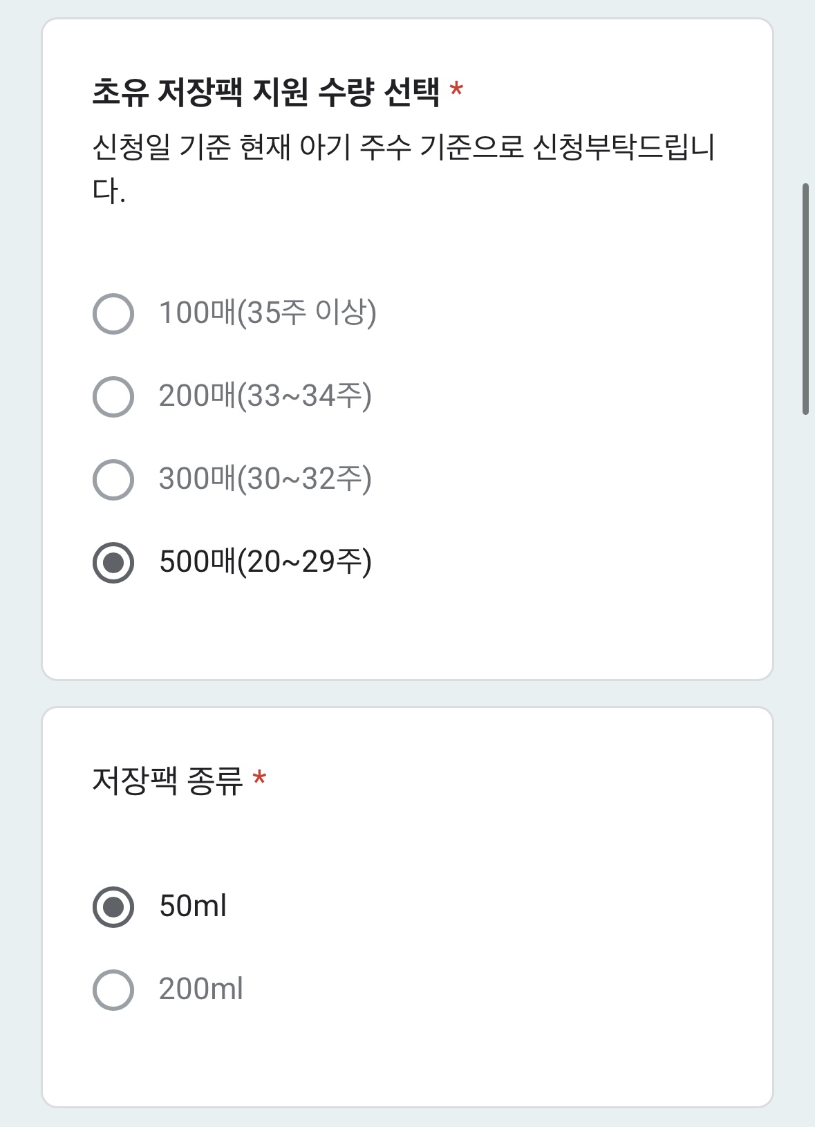 50ml 저장팩으로 신청했어요!